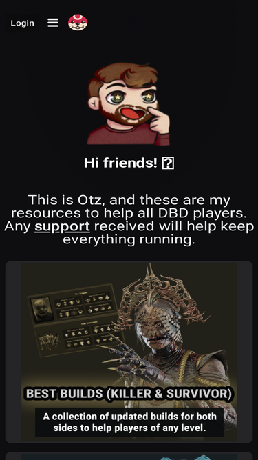 79%otzdarva's website, with information all dbd character, perks as well as beginner guides and best builds.