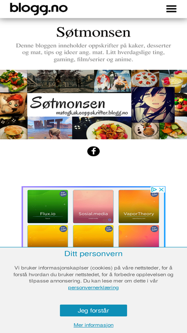 90%Denne bloggen inneholder oppskrifter på kaker, desserter og mat, tips og ideer ang. mat. Litt hverdagslige ting, gaming, film/serier og anime.