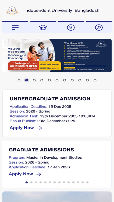 83%Independent University, Bangladesh (IUB) is a top private research university in Dhaka, founded in 1993. Offering world-class programs in business, engineering, life sciences, liberal arts, and social sciences, IUB hosts 19,000+ students, global faculty, and pioneering research centers in space science, climate change, robotics, and data science. Recognized by QS and Times Higher Education rankings as one of Bangladesh's leading universities.