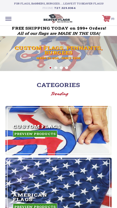 96%Since 1950, Beaver Flags has been providing US Flags, State Flags, Country Flags, Custom made Burgees and Pennants, MADE in the USA. For flags, banners and burgees...Leave it to Beaver Flags!