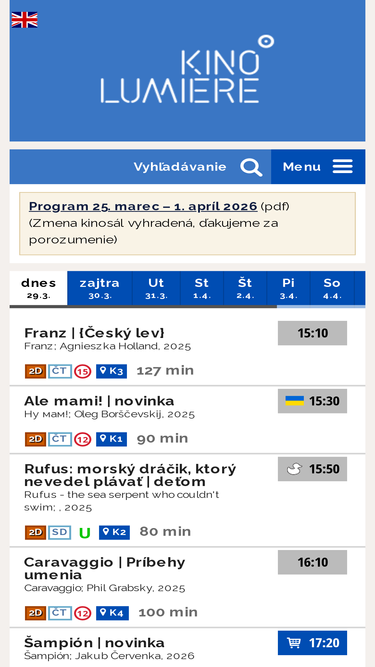Kompletný program, vstupenky online, kontakt a všetky informácie o Kino Lumière