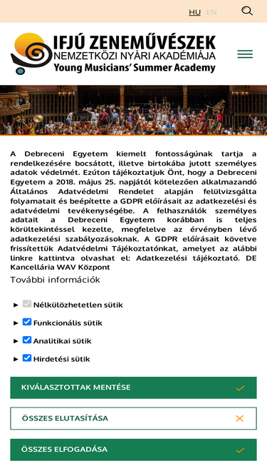 57%ifjú zeneművészek nemzetközi nyári akadémiája szakközépiskolás növendékek, főiskolások, egyetemi hallgatók és fiatal zenetanárok számára.
