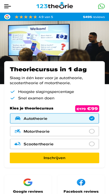66%Schrijf je vandaag nog voor onze 1 daagse theorie cursus in. Jouw-scooterrijbewijs.nl geeft 100% garantie dat je het haalt!