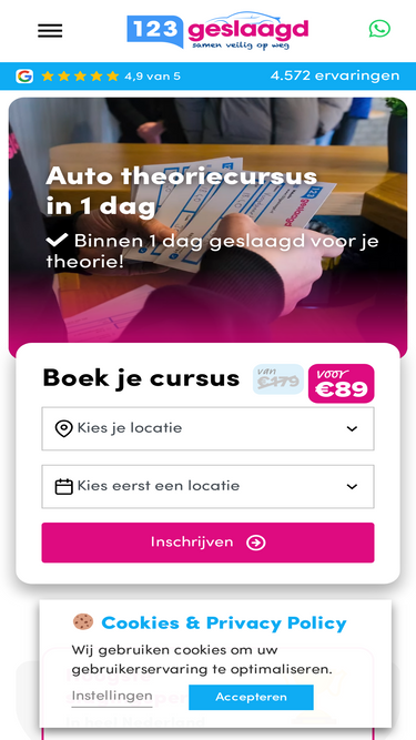 90%Meld je aan voor onze theoriecursus met CBR-examen op dezelfde dag! Slaag snel voor je auto-, motor- of scootertheorie met onze bewezen methode.