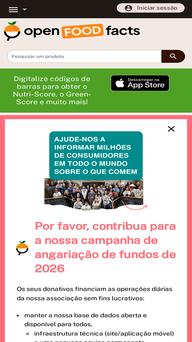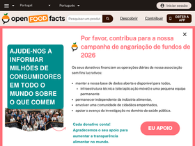 100%Uma base de dados colaborativa, gratuita e aberta de ingredientes, informações nutricionais e informações sobre produtos alimentares de todo o mundo