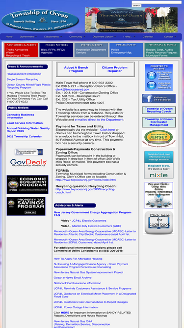 100%The official website of The Township of Ocean, NJ. Find news and information about our government and learn more about our programs and services.