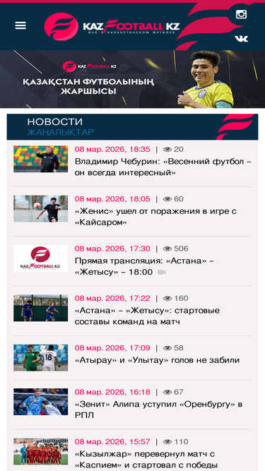 100%Все новости спорта Казахстана, аналитика, интервью, статистика, фото и видео. Календари игр, результаты матчей и турнирные таблицы. Онлайн трансляции матчей.