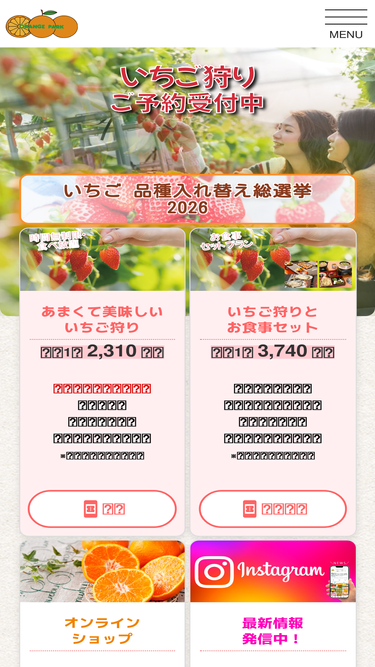 59%蒲郡オレンジパークでは、1月~5月にいちご狩り、6月~9月にメロン狩り・ぶどう狩り、10月~12月にみかん狩りと、1年中季節の様々なフルーツ狩りが楽しめる他、団体が利用できる大型のレストランや三河名産品の土産販売もしております。