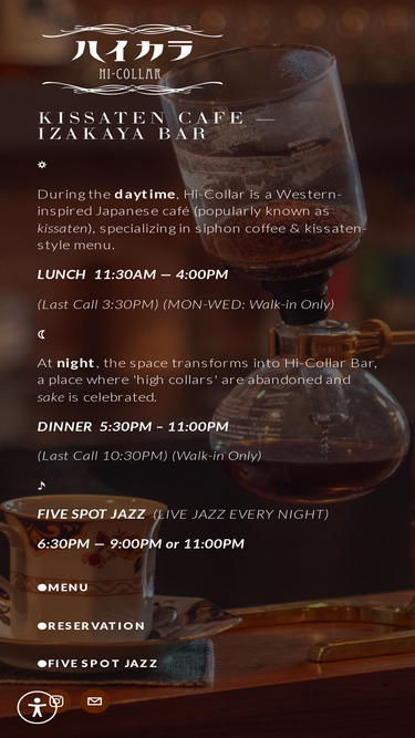 75%Hi-Collar in New York City is a daytime omurice, katsu sandwich coffee shop, and nighttime lively sake bar, inspired by the Japanese Jazz Age.