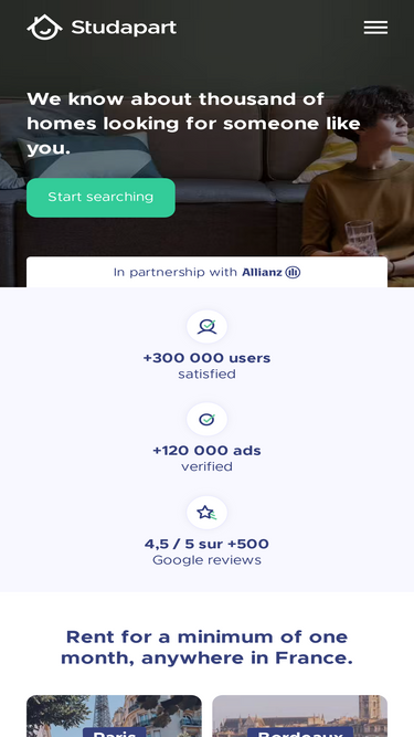 studapart is the housing service of more than 150 french schools and universities. more than 100,000 accommodations in 42 french cities are available on our platform dedicated to students