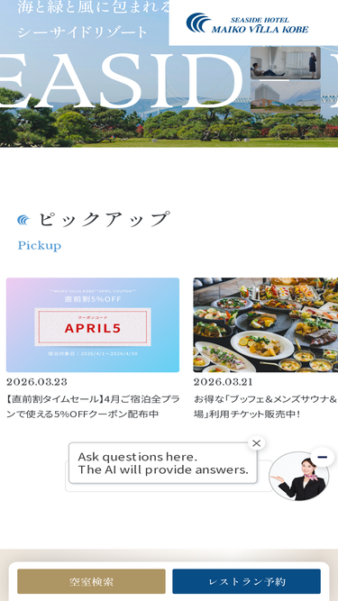 100%シーサイドホテル舞子ビラ神戸に関するお問い合わせや資料請求はこちらからお願いいたします。