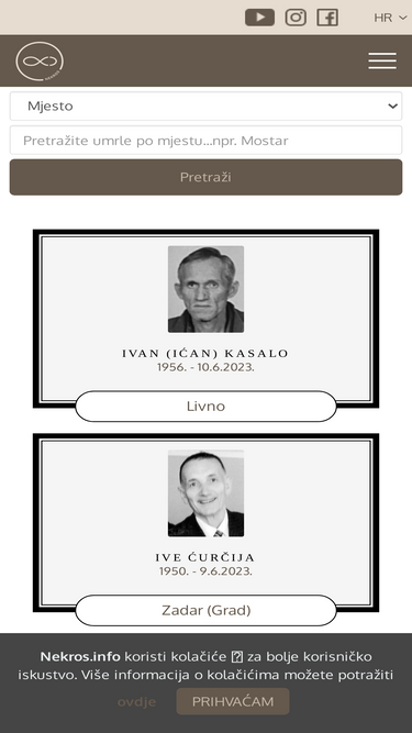 97%nekros.info je najkompletniji i najposjećeniji portal u bosni i hercegovini, crnoj gori, hrvatskoj i srbiji specijaliziran za obavijesti o smrti i posljednje pozdrave pokojnima. najopširnija baza umrlih, vjerskih zajednica i posljednjih počivališta na području balkana.