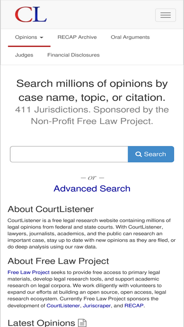95%Create alerts, search for and browse the latest case law, PACER documents, judges, and oral arguments. Updated automatically with the latest court documents. An initiative of Free Law Project.