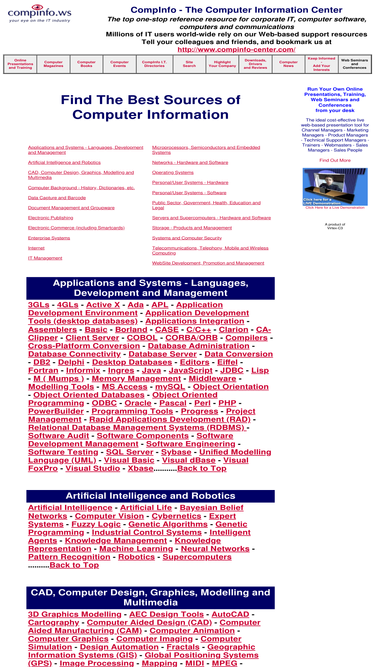 the resources for computer software and computers for corporate users with extensive links to technologies, manufacturers, support, news, magazines, events, books etc.
