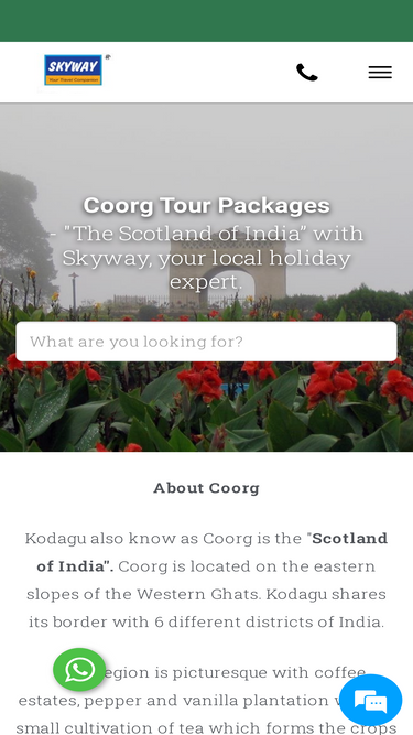 99%the scotland of india. skyway provides the best tour packages to coorg along with accommodation. coorg is the combination of nature, adventure and coffee estates.