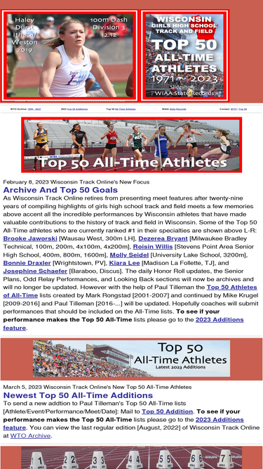 87%site for wisconsin high school girls track and field top 50 all-time athletes performance lists.