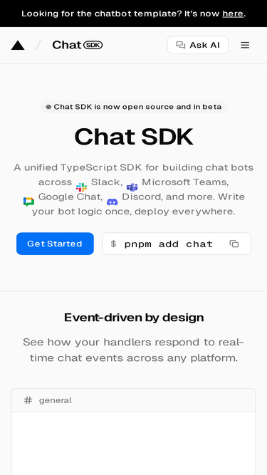 73%The Chat SDK is an open-source template that helps you quickly build powerful chatbot applications without starting from scratch.