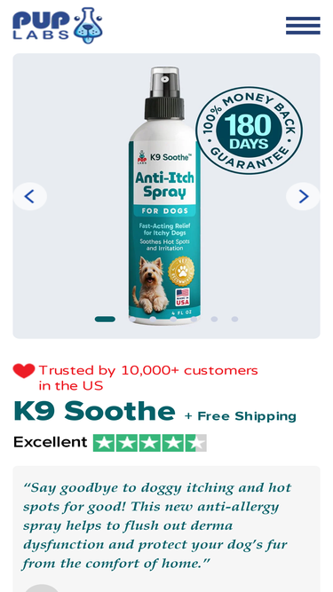 75%Soothe your dog's itchy skin naturally with K9 Soothe. Vet-approved formula that calms irritation, relieves allergies, and supports a healthy, shiny coat.
