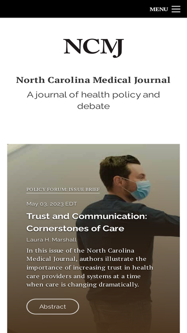 100%The North Carolina Medical Journal publishes original research and health policy analysis of relevance to North Carolinians.