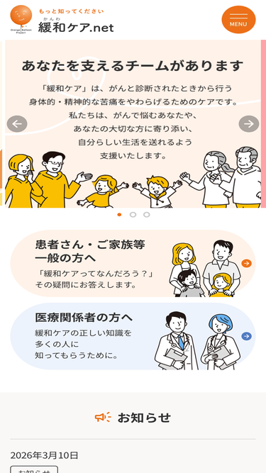 83%緩和ケアとは?緩和ケアは、がんと診断されたときから行う、身体的・精神的・社会的な苦痛を和らげるためのケアです。あなた自身や大切な人のために、緩和ケアについて知りましょう。