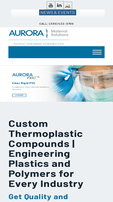 75%Aurora Material Solutions is the industry-leader in polymer & custom plastics compounding & has one of the broadest thermoplastic & PVC product portfolios available