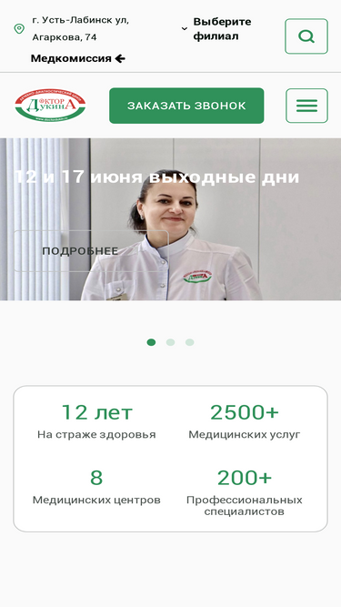 66%клиника доктор дукин — официальный сайт лечебно-диагностического центра в усть-лабинске. консультации специалистов, инструментальная диагностика, компьютерная томография, мрт, лабораторные исследования, хирургический стационар, стоматология, медкомиссия и другие услуги.