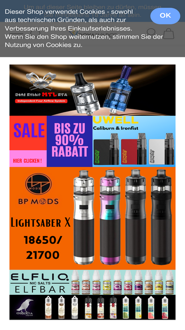 elektronische Zigarette - Akkuträger - Selbstwickler - Verdampfer - Basen - Aromen - Premiumliquids - Liquids - Vaporizer - CBD - Elfbar - Elfliq