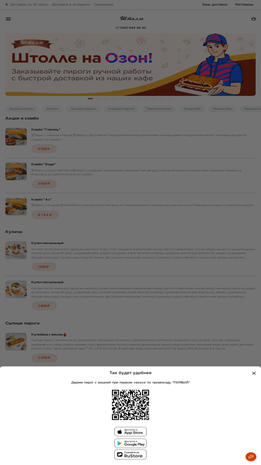 89%Заказать вкусные домашние пироги с доставкой по Москве и Московской области. Большой выбор начинок на любой вкус. Пекарня Штолле — доставка вкуснейших русских пирогов в Москве.