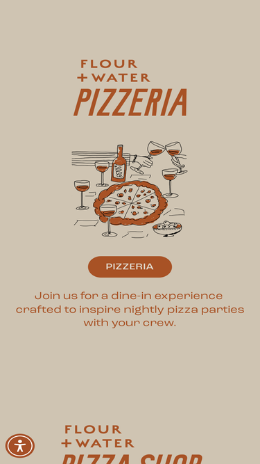 73%Flour + Water Pizzeria, from the team behind Flour + Water Hospitality Group, is a hub for all things pizza. Join us in our lively North Beach dining room or for takeout and delivery through our Pizza Shop.