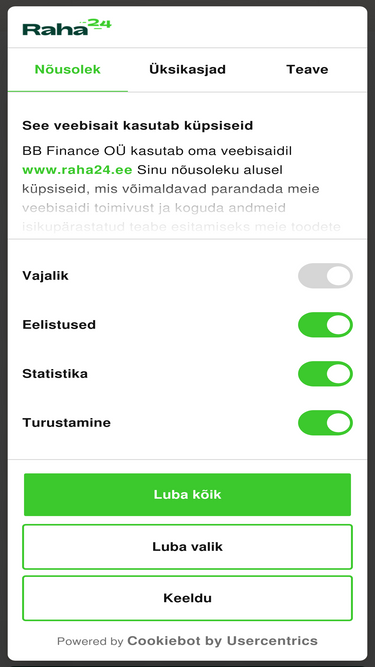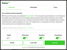 86%Raha24 klienditugi on avatud E-R 8.30-19.00 ja L 15.00. Küsimuste korral helista +372 662 9929 või kirjuta info@raha24.ee
