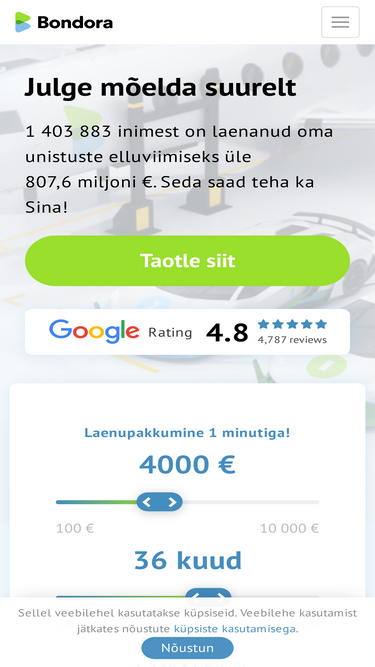 87%Lihtne protsess, kiire vastus, tagatiseta laen - on klientide sõnul põhjused, miks laenata Bondorast. Vaata ise järele!