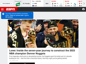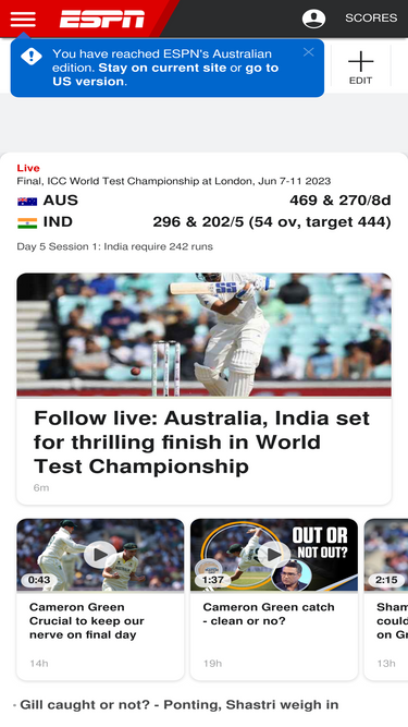88%Visit ESPN to get up-to-the-minute sports news coverage, scores, highlights and commentary for AFL, NRL, Rugby, Cricket, Football and more.