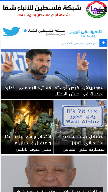 69%وكالة الأنباء الفلسطينية الرسمية، أخبار فلسطين والعالم العربي والعالم، على مدار الساعة، أهم الأحداث بالصوت والصورة باللغات العربية والإنجليزية والفرنسية والعبرية، وأخبار السياسية، القدس، والمسجد الأقصى، الأسرى، والإقتصاد، والثقافة، والرياضة، الوسائط المتعددة، والصور، شؤون اسرائيلية، المناسبات الوطنية الفلسطينية، قصص مصورة من فلسطين، كورونا فلسطين