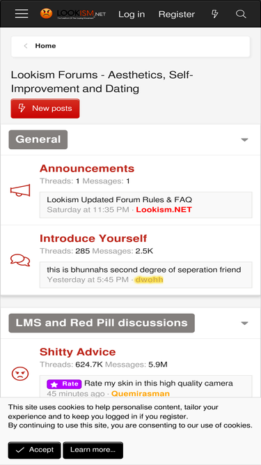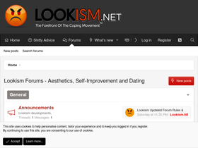 68%Lookism - The Forum If you’re reading this for the first time, welcome. What is Lookism? Lookism is a forum for the discussion of aesthetics, looks discrimination, self-improvement, dating, and many other topics. Essentially, Lookism is a free speech platform which aims to allow its users to...