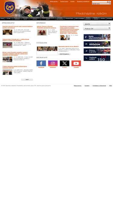 42%hasičský záchranný sbor české republiky (hzs čr) chrání životy, zdraví obyvatel a majetek před požáry a poskytuje pomoc při mimořádných událostech (živelních pohromách, průmyslových haváriích nebo teroristických útocích). v rámci integrovaného záchranného systému (izs) koordinuje pomoc při mimořádných událostech, záchranných a likvidačních pracech. spolupracuje s ostatními složkami izs i se správními úřady a jinými státními orgány, orgány samosprávy, právnickými a fyzickými osobami, neziskovými organizacemi a sdruženími občanů. má ve své působnosti i ochranu obyvatelstva. tvoří jej generální ředitelství hzs čr, které je organizační součástí ministerstva vnitra, 14 hasičských záchranných sborů krajů, střední odborná škola požární ochrany a vyšší odborná škola požární ochrany ve frýdku-místku a záchranný útvar hzs čr v hlučíně. součástí generálního ředitelství hasičského záchranného sboru čr jsou také vzdělávací, technická a účelová zařízení: odborná učiliště požární ochrany (ve frýdku-místku, brně, chomutově a borovanech), institut ochrany obyvatelstva lázně bohdaneč, technický ústav požární ochrany praha, opravárenský závod olomouc a základna logistiky olomouc.