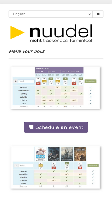 78%framadate is an online service for planning an appointment or make a decision quickly and easily.