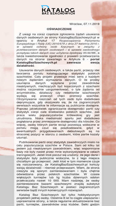 71%największy szachowy portal internetowy po polsku. relacje z turniejów, wiadomości z najważniejszych, szachowych wydarzeń, informacje o szachistach i partiach szachowych.