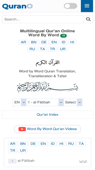 87%the holy qur'an multilingual qur'an online word by word al-quran translation, transliteration & tafsir in 10 languages: arabic, bangla/bengali, deutsch/german, english,hindi, indonesia, russian, tamil, türkçe & urdu. - quran o
