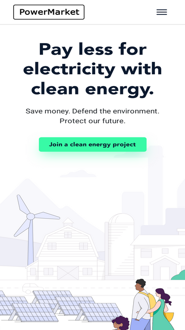 77%PowerMarket makes it easy to go solar. Rather than installing solar panels directly on your home or business you can now get the electrical output from a local solar, wind or hydro project credited directly to your monthly utility bill. It's easy, less expensive, and supports clean energy development in your community.