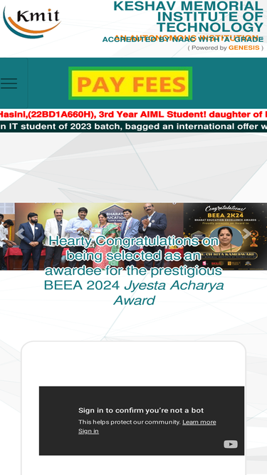 79%Keshav Memorial Institute of Technology (KMIT), established in the year 2007, is one of the premier engineering colleges in the state of Telangana.