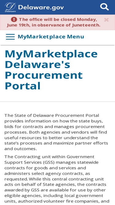 99%welcome to the state of delaware office mymarketplace - delaware's procurement portal.