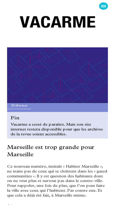 vacarme est une revue trimestrielle culturelle, politique et sociale, constituée à la fois d'enquêtes de terrain, d'articles d'opinion et de (…)