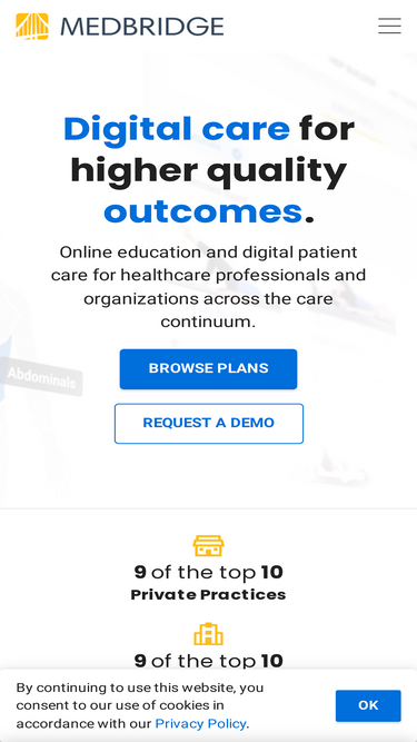 75%Medbridge provides leading-edge education and a patient-friendly digital care platform, helping healthcare professionals to care for more patients and practice at the top of their licenses.