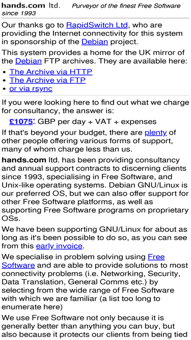 82%hands.com provides consultancy and support for free software, as well as general unix consultancy, on either a chargeable time, or annual support basis.