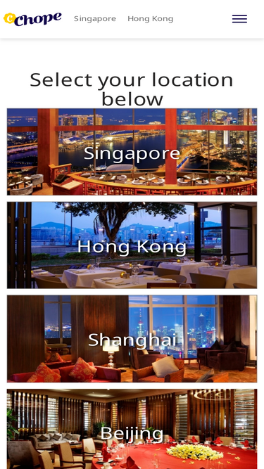 98%Book via Chope at Singapore, Hong Kong, Shanghai and Beijing's top restaurants. With instant confirmation 24/7, it's the smarter way to dine!