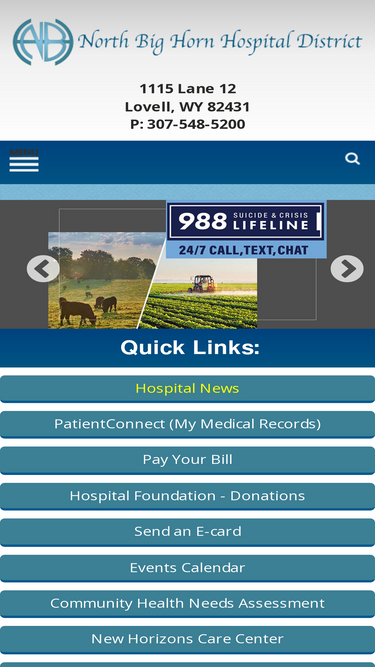 100%North Big Horn Hospital and New Horizons Care Center are located at the foot of the Big Horn Mountains in Lovell, Wyoming. We take pride in our facilities and our staff is fully trained and certified.