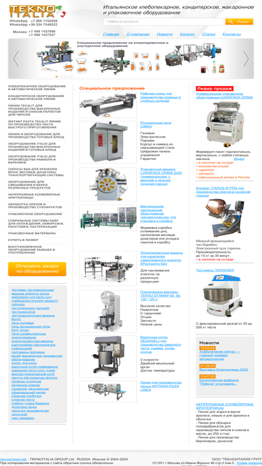 98%текноиталия груп - итальянское хлебопекарное, кондитерское, упаковочное, макаронное, термоформовочное, дражеровочное оборудование, линии переработки овощей, фруктов, орехов, линии для охлаждения, заморозки, расстойки