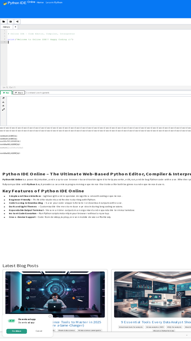 75%build and run your python code instantly. online-python is a quick and easy tool that helps you to build, compile, test your python programs.