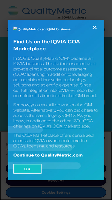 83%QualityMetric is your partner for patient-centric PRO and ePRO measures in clinical research to generate actionable data from the patient’s perspective.