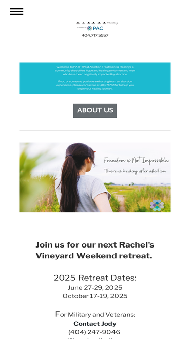 87%PATH offers hope and healing. Few people anticipate the agony an individual may go through after an abortion. The physical and emotional distress can be devastating, and often surface months or years after the event.